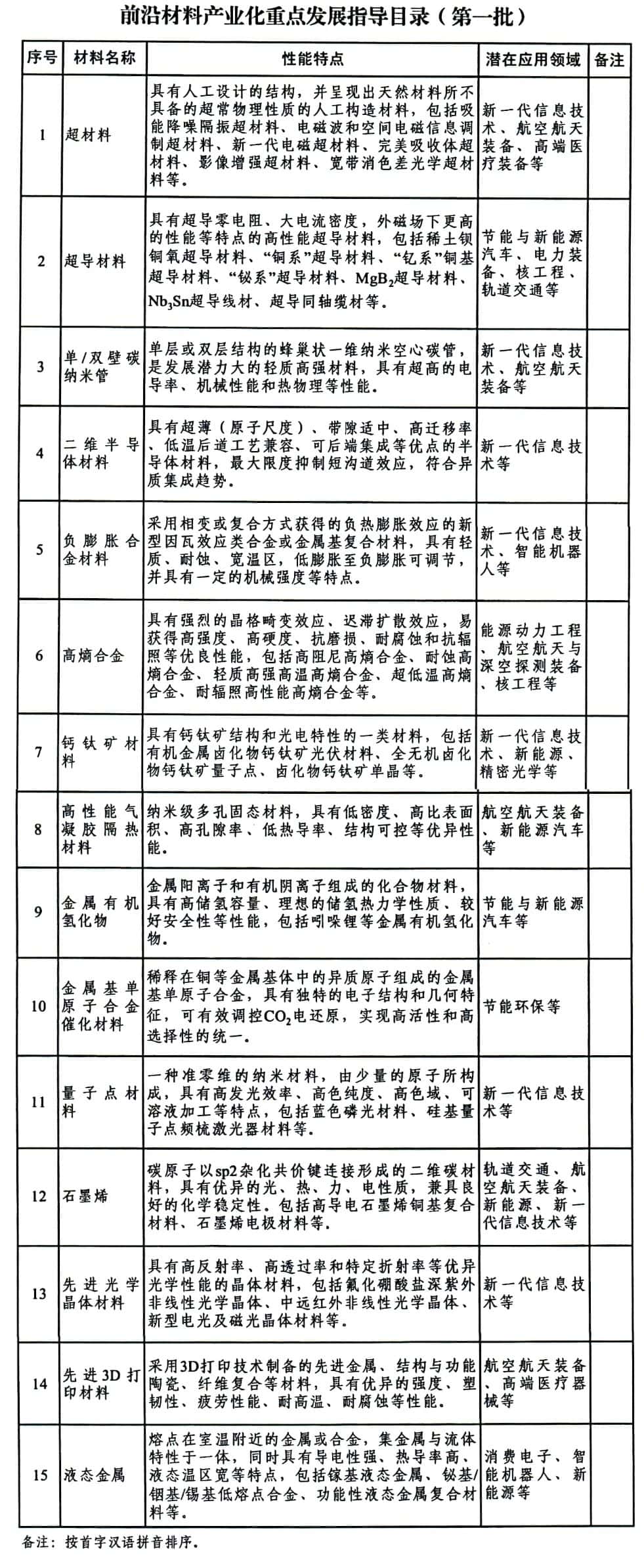 附件:前沿材料产业化重点发展指导目录(第一批)